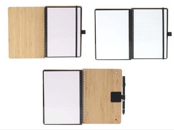 Avec une couverture rigide en bambou robuste et 20 feuilles/40 pages de papier ligné effaçable.