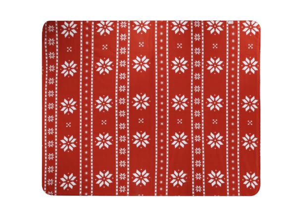 Couverture de 130x160 cm en polyester RPET doux, avec un design unique de Noël en rouge avec des motifs de Noël blancs.