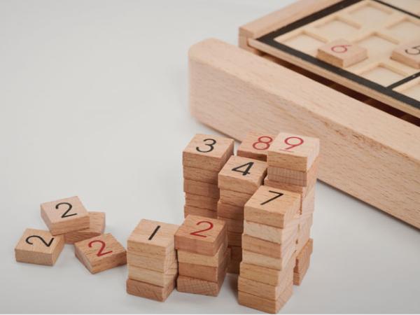 Puzzle en Bois en Forme de Dé dans un Sac de Coton