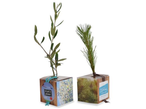 Le cube arbre contient un véritable petit plant d’arbre en motte de 25 à 30 cm de hauteur, livré avec les racines humidifiées.
