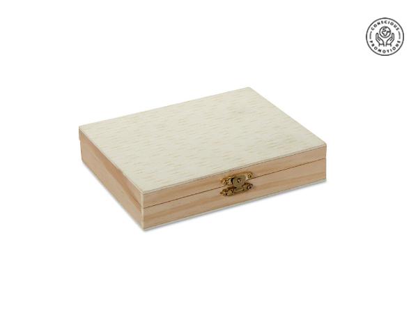 Détails techniques de "Mallette en Bois avec Accessoires de Peinture et Coloriages"