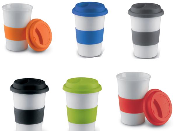Mug simple paroi en céramique avec couvercle et bande en silicone.