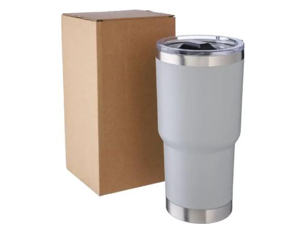 Mug double paroi en acier inoxydable 304 recyclé d'une contenance de 590 ml avec couvercle en PS dans une boîte cadeau en kraft.