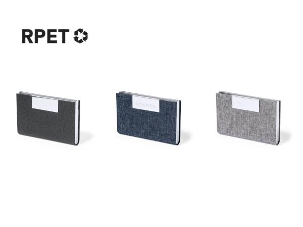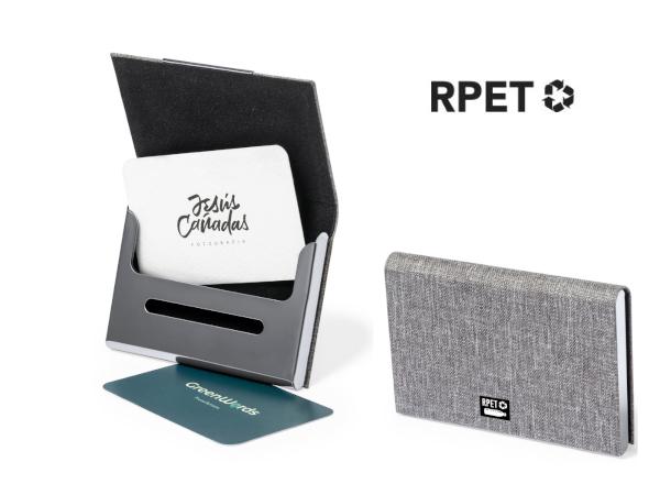 Elégant porte-cartes en polyester RPET 300D résistant. Couvertures rigides et fermeture magnétique. Avec détail métallique chromé sur le devant et compartiment intérieur pour ranger les cartes. Avec logo RPET au dos et disponible dans une large gamme de couleurs.