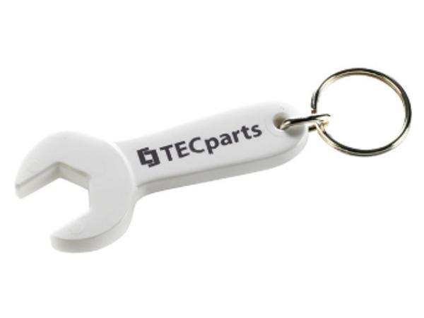 Conçu comme une clé anglaise, est un excellent article promotionnel pour le marketing dans le secteur de la construction et de la mécanique et peut être combiné avec notre célèbre porte-clés Casque.