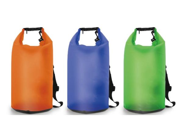 Sac étanche 15 l semi-transparent avec une bandoulière réglable.