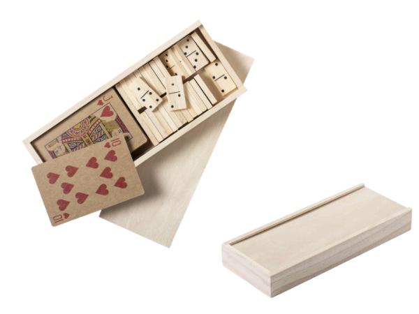 • Libellé : Set avec un Jeu de Cartes en Papier Recyclé et Dominos en Bois