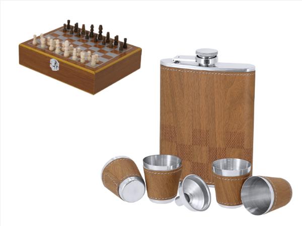Set Cadeau avec Echiquier, Flasque et Verres à Shots