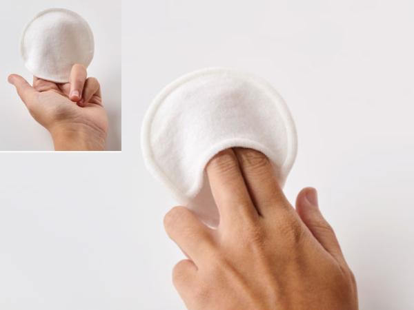 3 pièces de patchs nettoyants réutilisables et lavables pour le visage (diamètre 8cm) en 70% de fibre de bambou et 30 % de coton dans une pochette en coton.